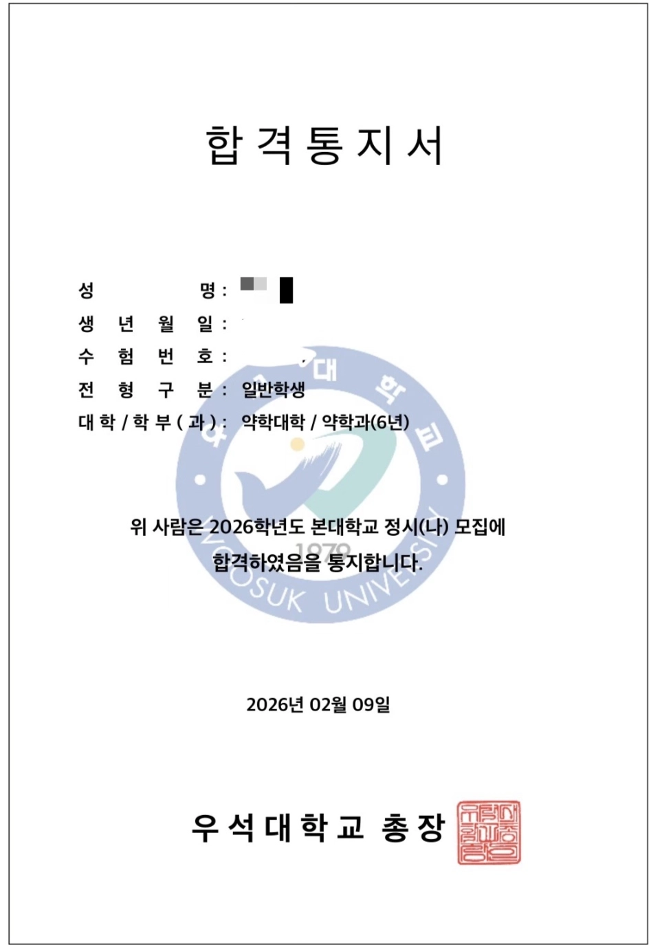서울대, 고려대, 약대 등 정시 합격
